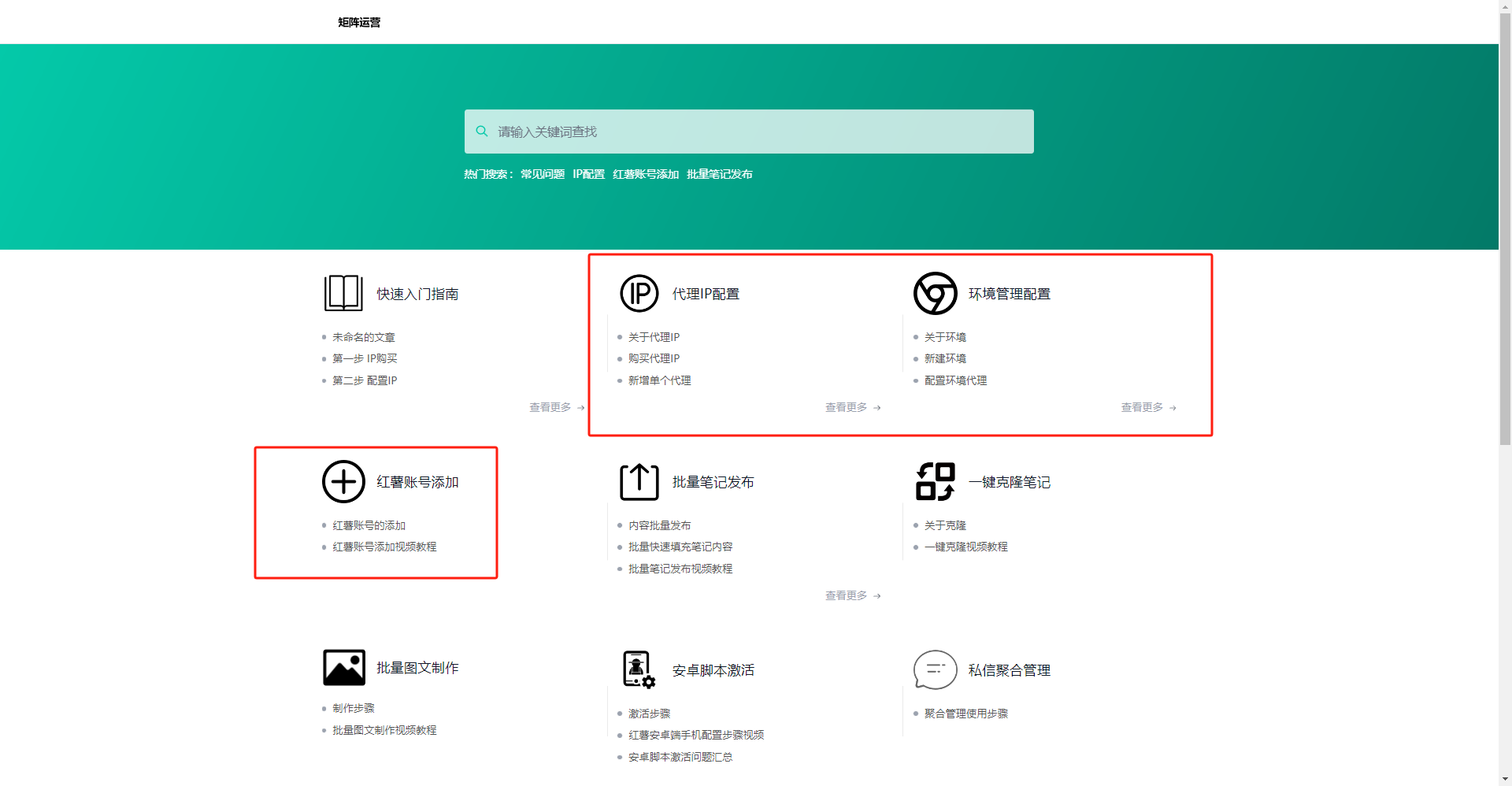 二、本片篇章共4步,是“代理IP配置”、“环境管理配置”、“红薯账号添加”三个板块的精简版。如果配置中间遇到问题或者希望查看视频演示,请到“代理IP配置”、“环境管理配置”、“红薯账号添加”这三个分板块中查看。