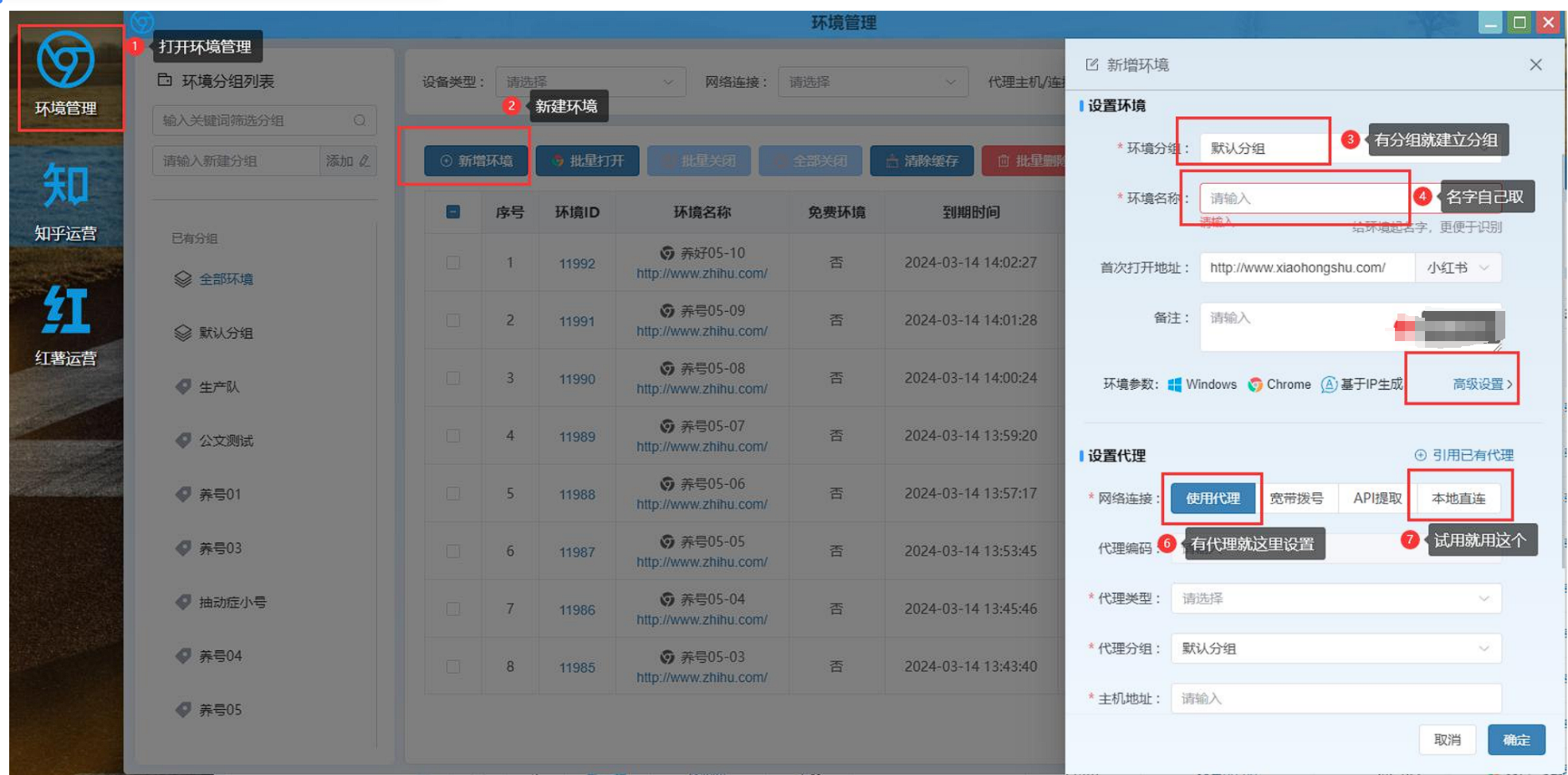 在软件的【环境管理】里面新建账号环境