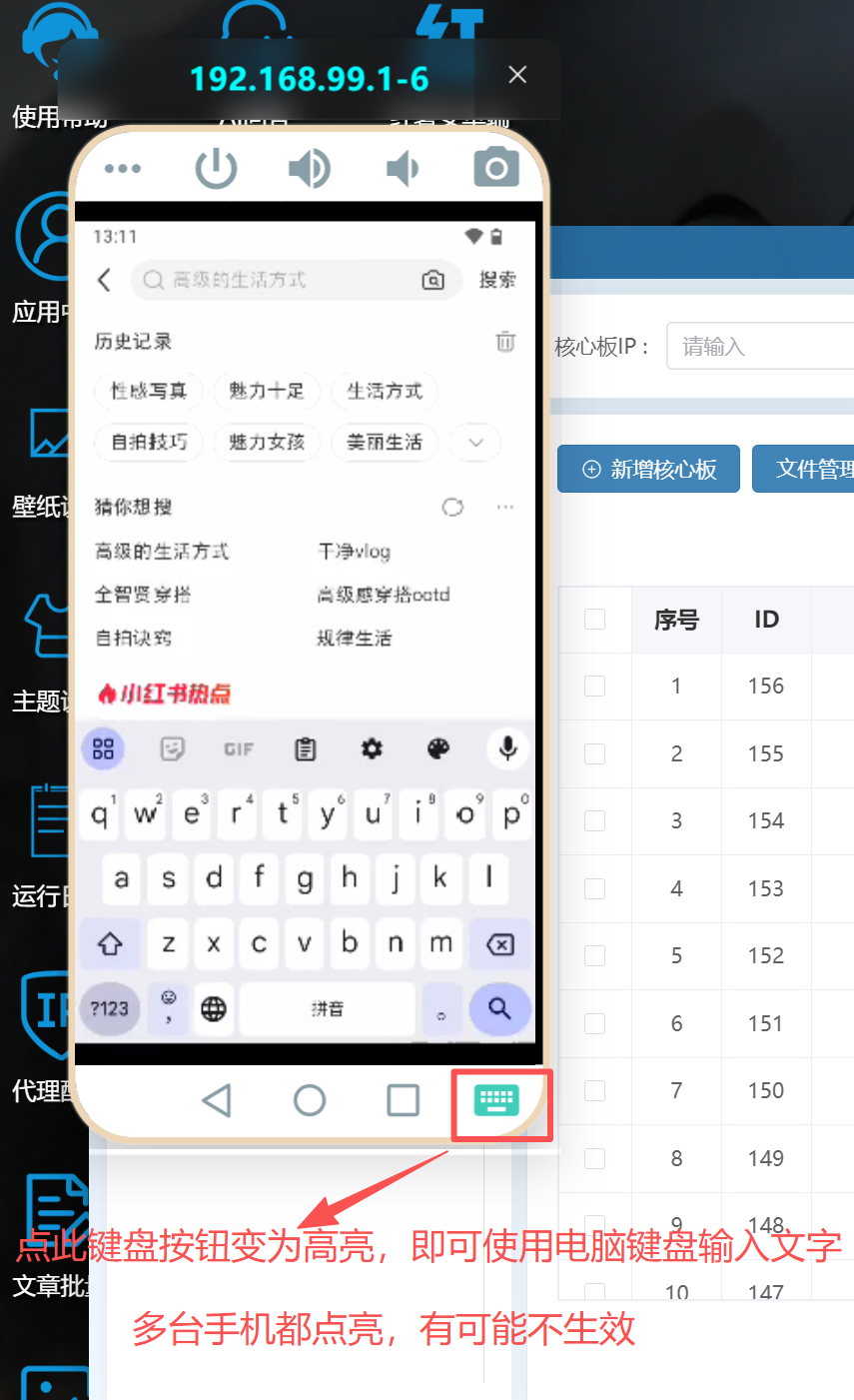 键盘按钮高亮则为该手机打开电脑键盘输入 关闭直接再点击一次