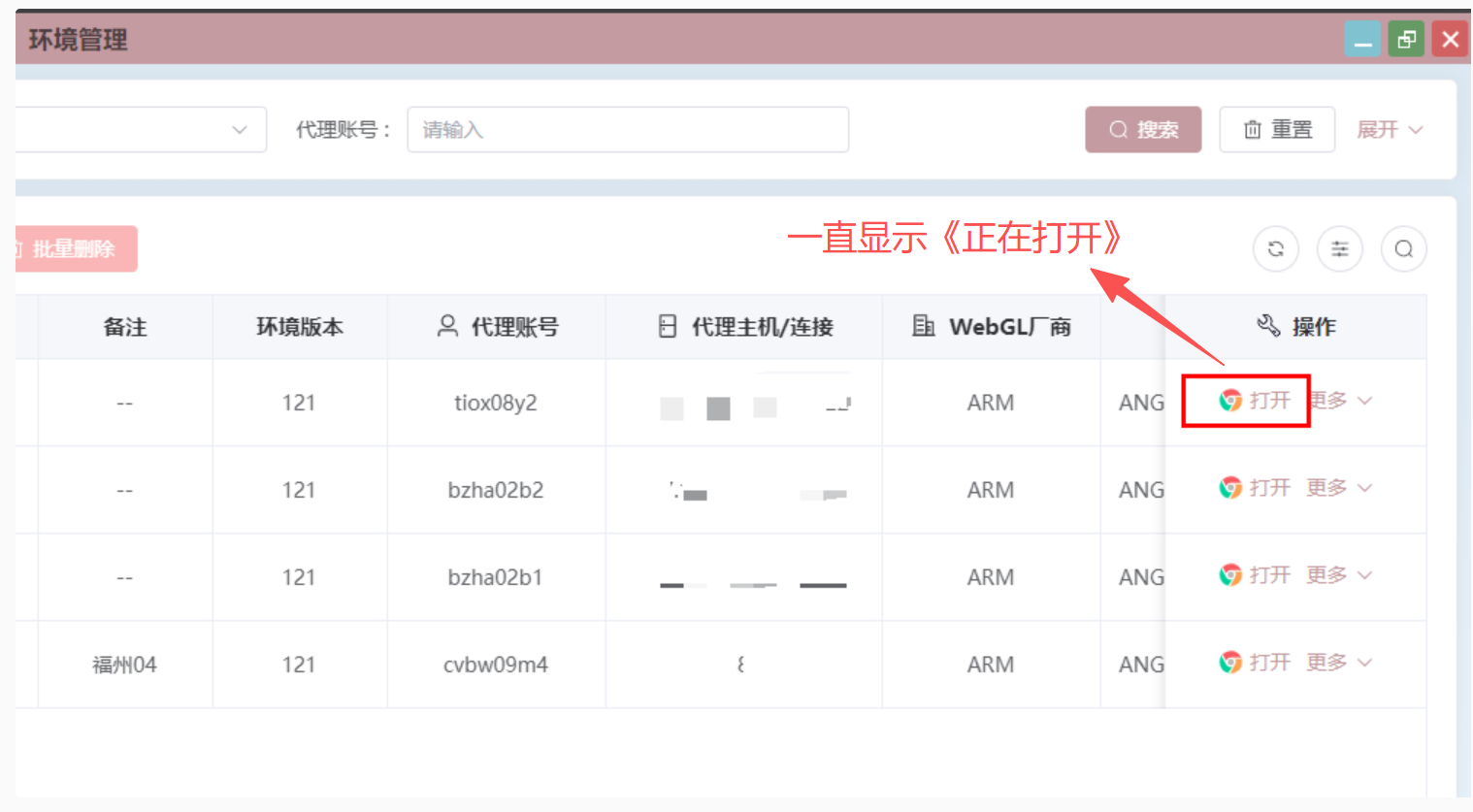 在使用系统过程中如果遇到在环境管理或者红书运营界面中点击打开按钮,网页没跳转的情况有几种:
